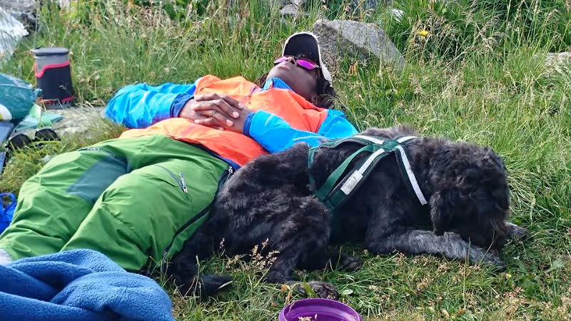 Me and my old dog, resting after a hike to Glittertind.